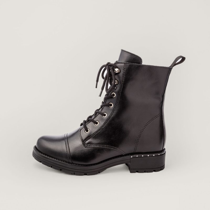 Naisten klassisen ajaton nauhanilkkuri syksyisiin keleihin. Korossa elegantit niittikoristelut. Helposti puhdistettavaa pintanahkaa. Sisäsyrjässä pukemista helpottava vetoketjukiinnitys ja takana vetolenkki. Kengät ovat vettähylkivät ja pitävät jalkasi kuivana kosteilla ilmoilla.