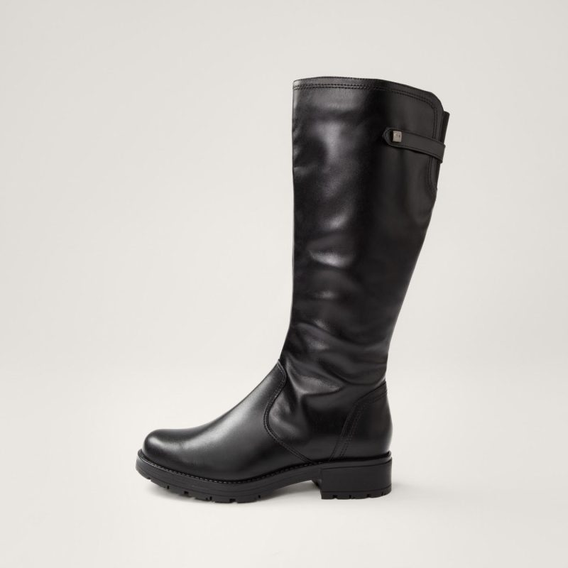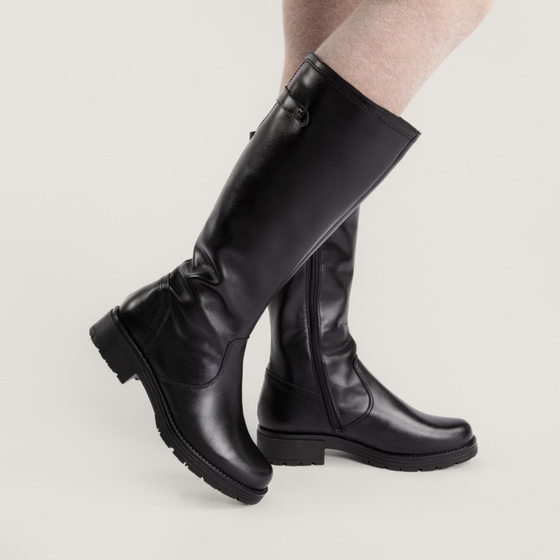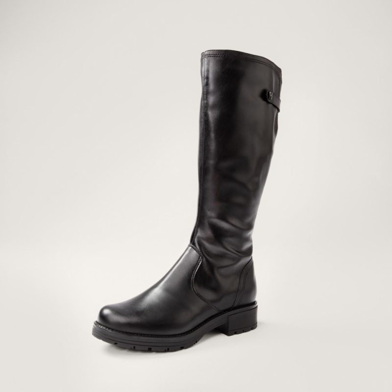 Naisten klassiset ja ajattomat saappaat. Saappaat ovat kevyet, ja niissä on miellyttävä matala korko, sekä pieni koristeyksityiskohta varren yläreunassa. Pintanahkainen pinta on helppo pitää puhtaana.