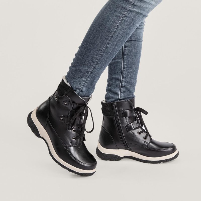 Naisten lämmin nauhanilkkuri 100% villavuorella. Nauhakiinnityksen lisäksi sisäsyrjässä pukemista helpottava vetoketjukiinnitys. Kengän takaosassa pehmeät mokkayksityiskohdat. Erittäin pitävä PIQANT GRIP+ -kitkapohja toimii erinomaisesti talvisissa olosuhteissa.