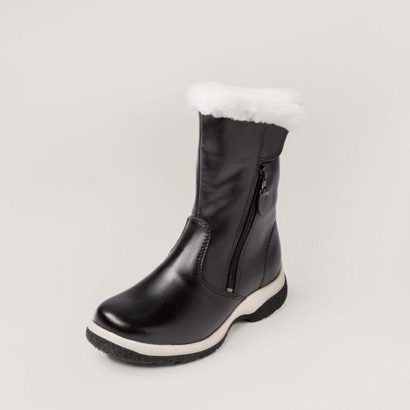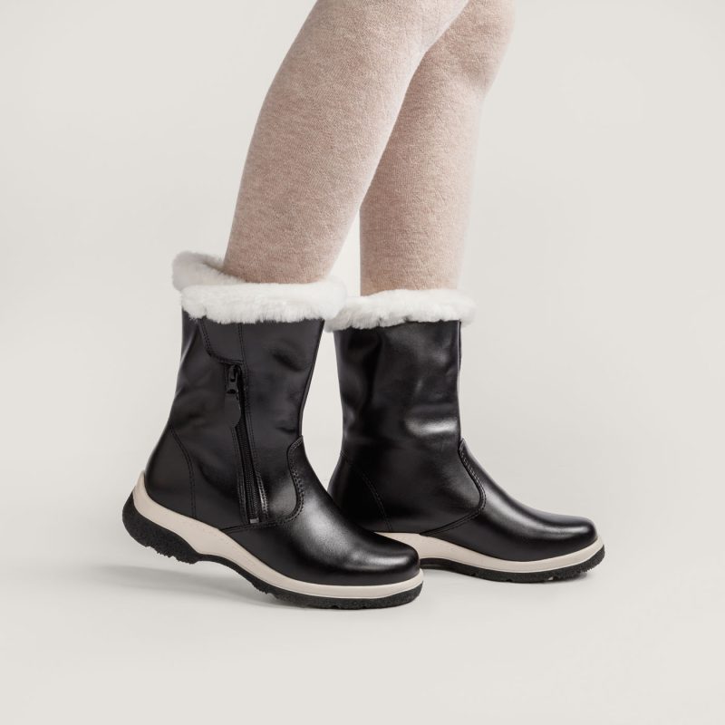 Naisten lämmin talvisaapas turkisvuorella. Tyylikkään yksinkertaistettu saapasmalli, jossa huomion keskipisteeseen nousee ylellinen karvareunus varren yläosassa. Pintanahkainen materiaali on helppo pitää puhtaana. Sisäsyrjässä vetoketju- ja tarrakiinnitys. Erittäin pitävä PIQANT GRIP+ -kitkapohja toimii erinomaisesti talvisissa olosuhteissa.