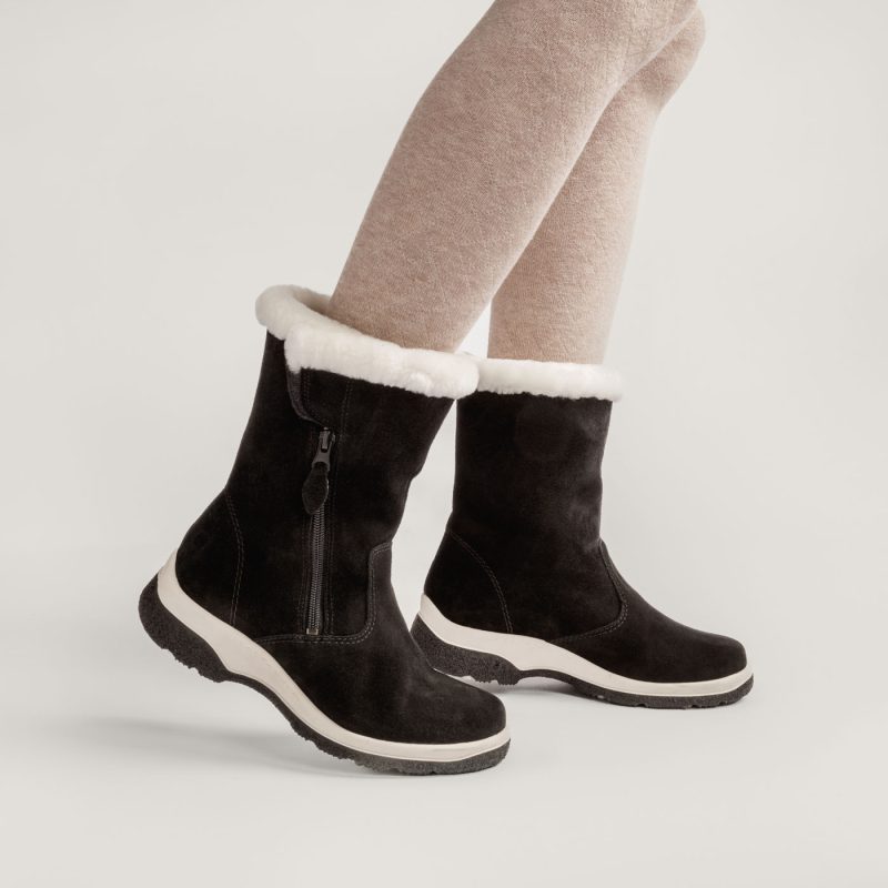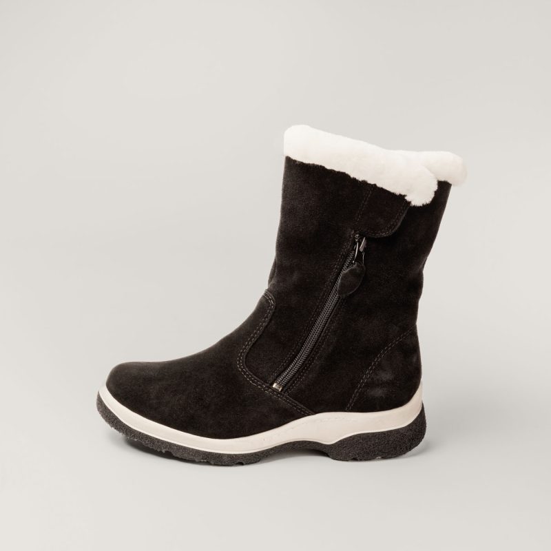 Naisten lämmin talvisaapas pehmeällä turkisvuorella. Tyylikkään yksinkertaistettu saapasmalli, jossa huomion keskipisteeseen nousee ylellinen karvareunus varren yläosassa. Sisäsyrjässä vetoketju- ja tarrakiinnitys. Erittäin pitävä PIQANT GRIP+ -kitkapohja toimii erinomaisesti talvisissa olosuhteissa.
